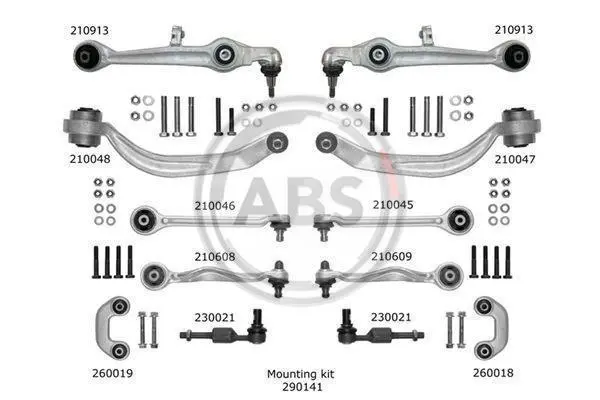 К-кт важелів перед.підвіски Audi A6/Superb/Passat B5 (з тонким пальцем) A.B.S. 219902