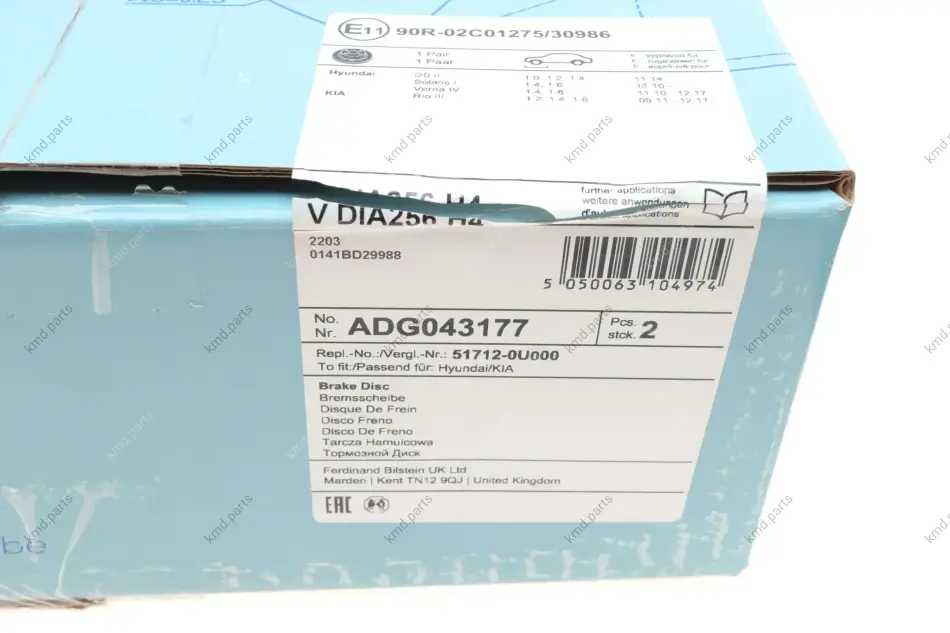 Диск гальмівний передній HYUNDAI, KIA BLUE PRINT ADG043177