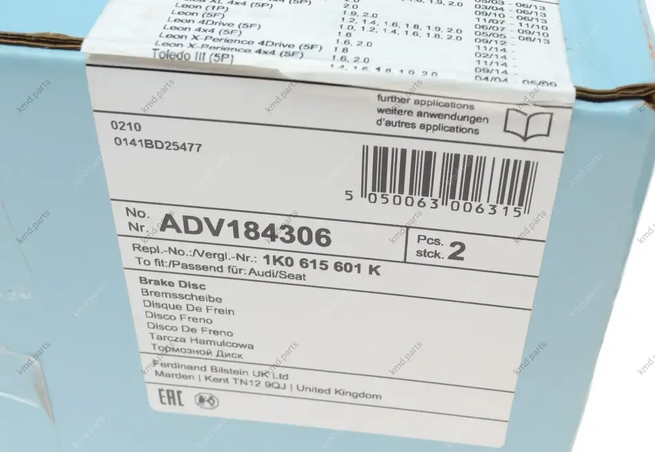 - BLUE PRINT ADV184306 підходить до марок/моделей авто: