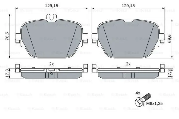 Комплект гальмівних колодок задн, MERCEDES CLS (C257), E (A238), E ALL-TERRAIN (S213), E (C238), E T-MODEL (S213), E (W213), EQC (N293), GLC (C253), GLC (X253) 2.0DH-Electric 06.16- 0 986 424 858 BOSCH 0986424858