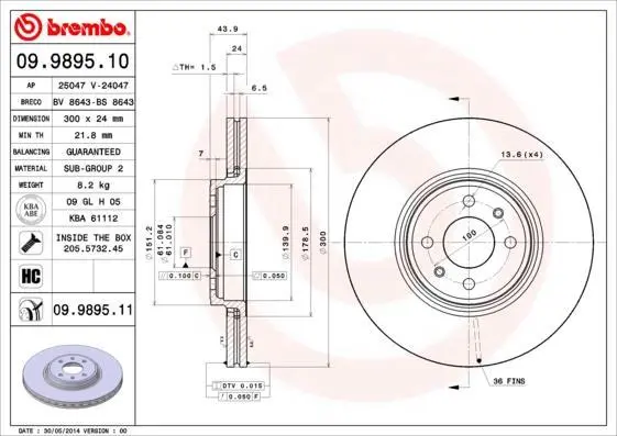 - BREMBO 09.9895.11 підходить до марок/моделей авто: