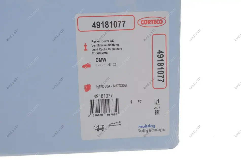 Прокладка кришки клапанів BMW 3 (E90/E91)/5 (F10/F11/F07)/7 (F01/F02/F03/F04) 3.0D 07- N57D30 (к-кт) CORTECO 49181077