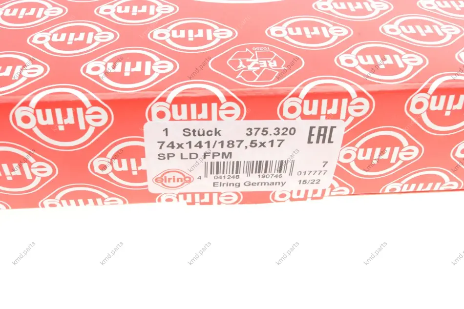 Сальник колінвалу Корпус коробки передач (74x141/187,5x17) ABARTH 124 SPIDER, 500 / 595 / 695, 500C / 595C / 695C, GRANDE PUNTO, PUNTO, PUNTO EVO ALFA ROMEO GIULIETTA 1.2-1.4LPG 09.99- EL375320 ELRING 375320