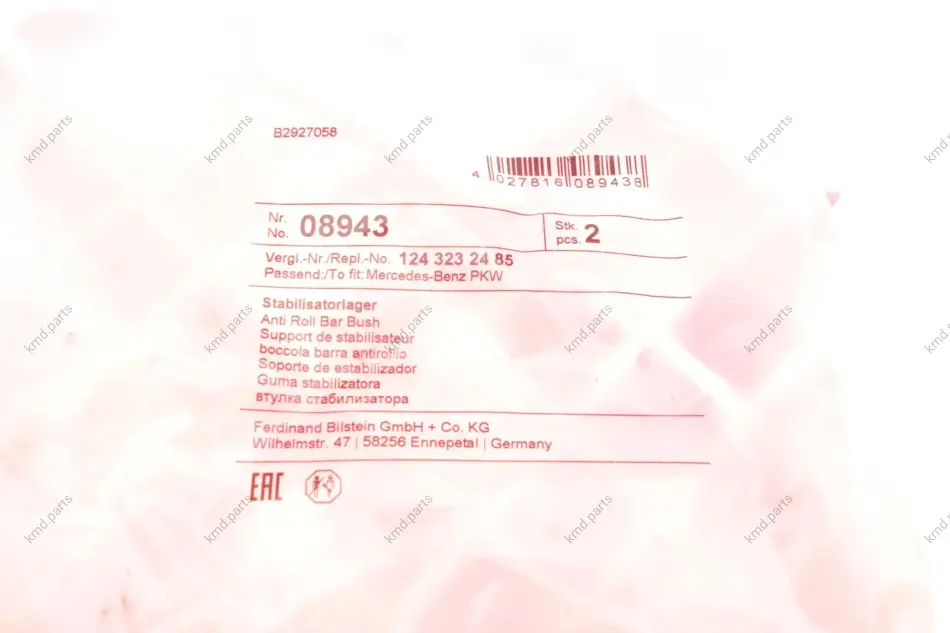- FEBI BILSTEIN 08943 підходить до марок/моделей авто: