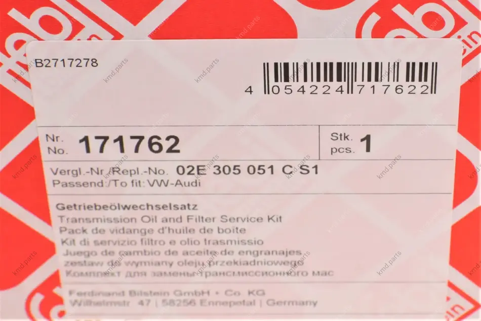 Комплект для заміни оливи АКПП Audi/Skoda/Seat/VW 03- FEBI BILSTEIN 171762