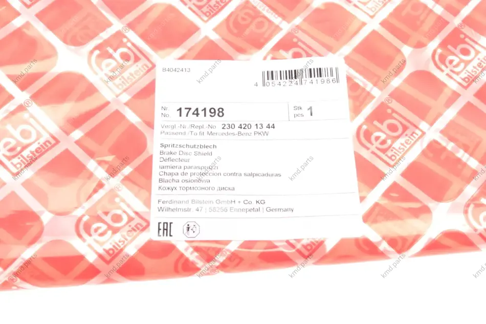Захист гальмівного диска задній. MERCEDES CLS (C219), E T-MODEL (S211), E (VF211), E (W211), SL (R230) 1.8-6.2 10.01-01.12 FE174198 FEBI BILSTEIN 174198