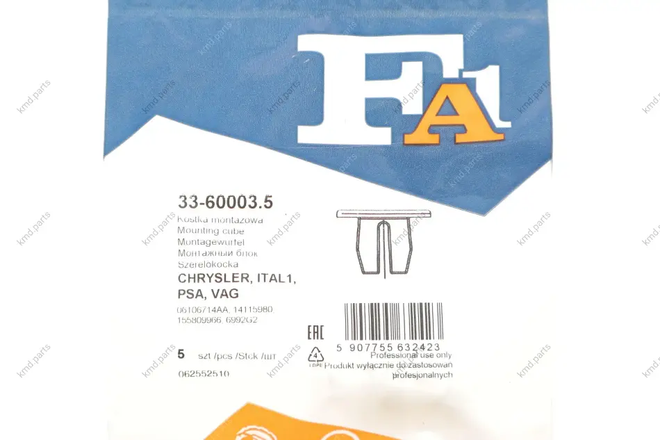 Кліпса кріплення (к-кт 5шт) VW Caddy 82-/Citroen Jumper 06- FA1 Fischer Automotive One (FA1) 33-60003.5