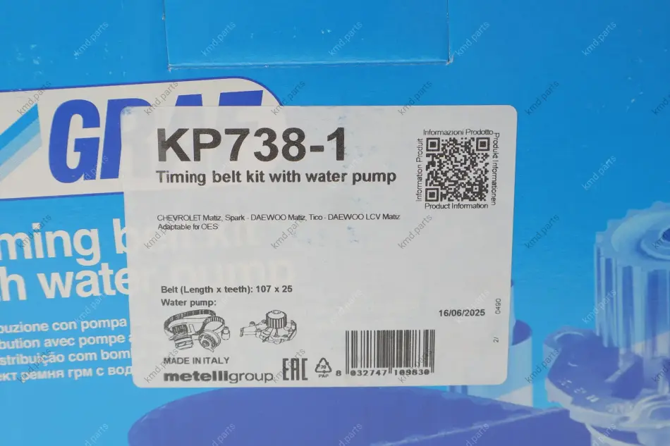 Комплект ГРМ + помпа Daewoo Matiz 0.8/Chevrolet Aveo 1.2 00-06 (25x107z) (PA738) GRAF KP738-1