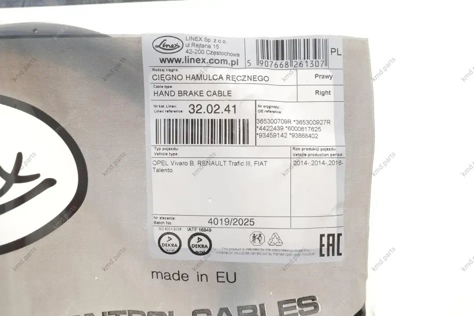 Трос ручника (R) Renault Trafic/Opel Vivaro 14- LINEX 32.02.41