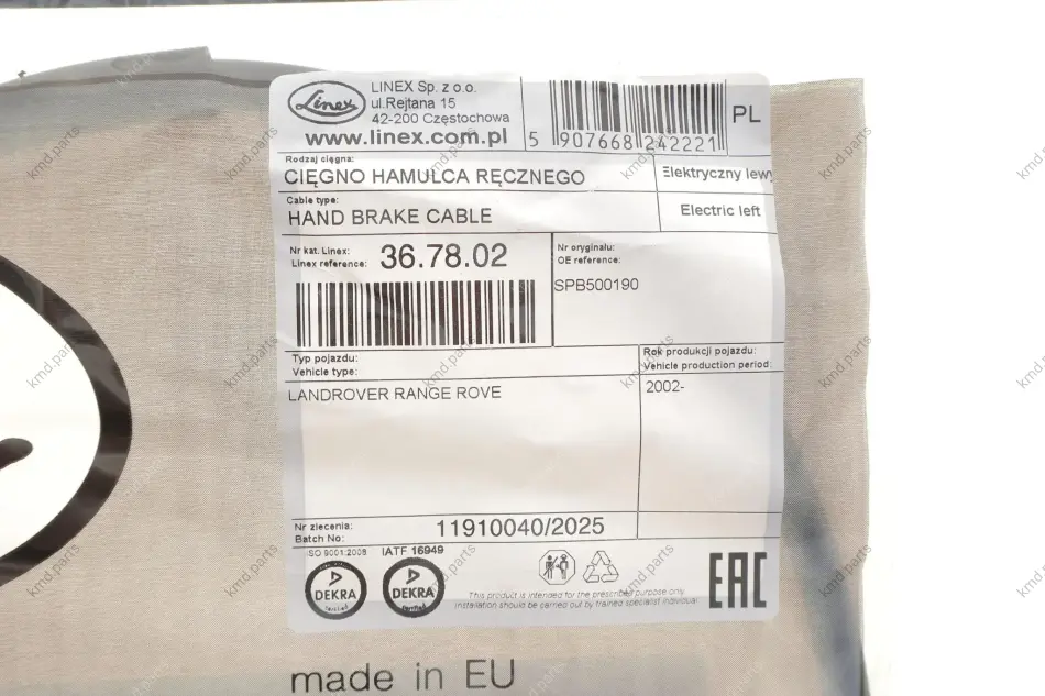 Трос ручника (L) Land Rover Range Rover 02-12 (L=815/710mm) LINEX 36.78.02