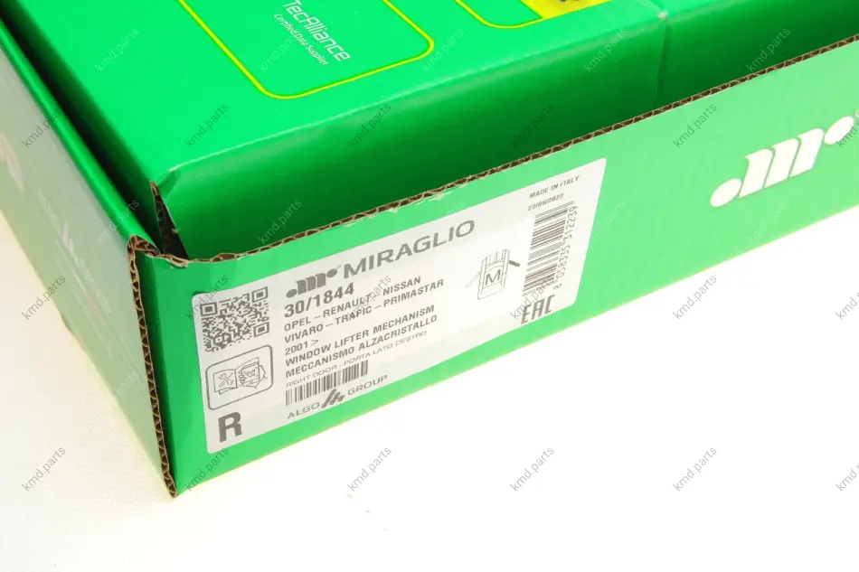 Склопідіймач (передній) Renault Trafic/Opel Vivaro 01- (R) (електро) (без моторчика) MIRAGLIO 30/1844