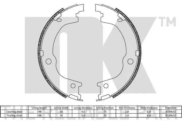 Колодки гальмівні стояночного гальма NK 2734845