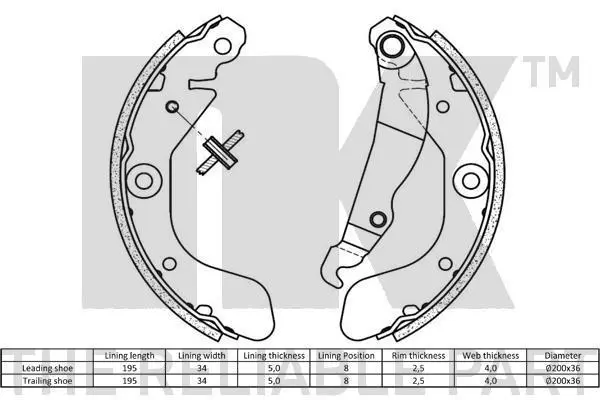 Колодки гальмівні барабанні, комплект NK 2736857