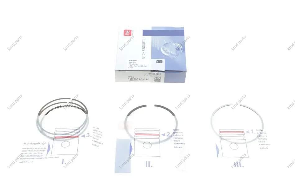 Кільця поршневі Opel Combo 1.4i 04- (73.40mm/STD) (1.2-1.2-2) NPR 120 035 0050 00