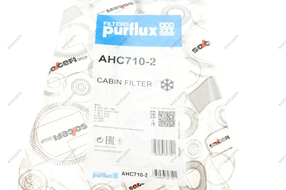 Фільтр салону BMW 5 (G30)/7(G11/G12) 15-(вугільний))) Purflux AHC710-2