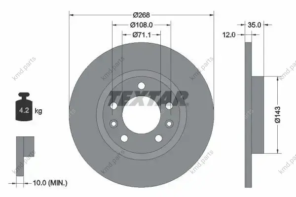 Диск гальмівний (задній) Citroen C4 13-/Berlingo/Peugeot Partner 18- (268x12) PRO TEXTAR 92268003