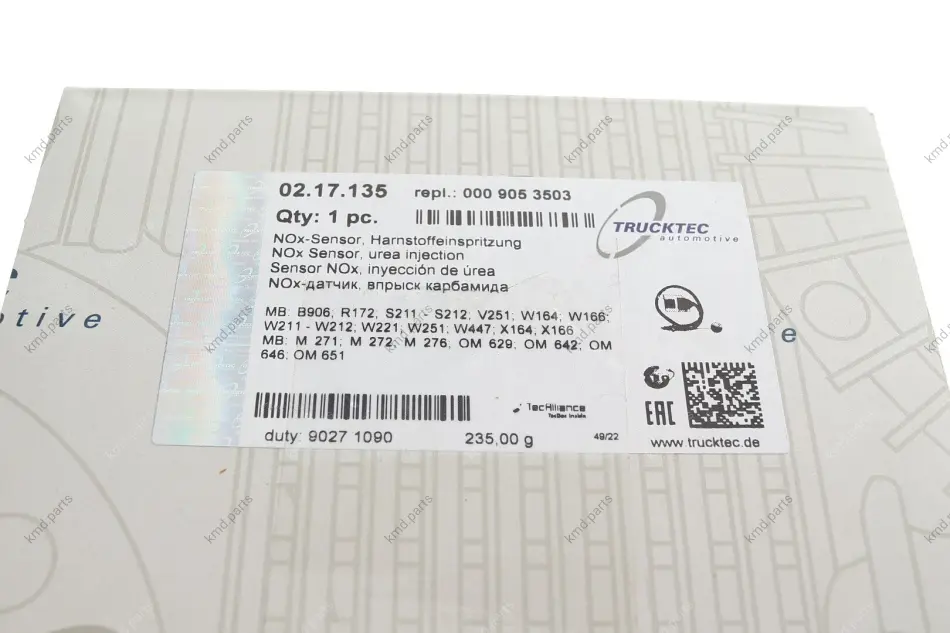 Датчик оксидів азоту (NOx) MB Sprinter 06-/Vito (W447) 14- (OM651/OM642) (5WK9 6682C) AUTOMOTIVE TRUCKTEC 02.17.135