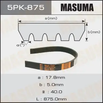 Ремінь поліклінової (5PK-875) MASUMA 5PK875
