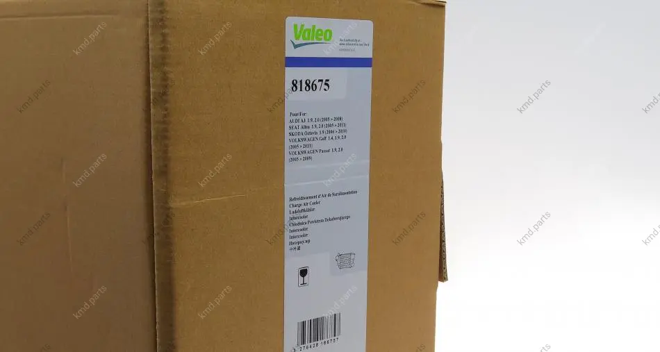 Інтеркулер AUDI A3 SEAT ALTEA, ALTEA XL, LEON, TOLEDO III SKODA OCTAVIA II, SUPERB II VW CADDY III, CADDY III/MINIVAN, EOS, GOLF PLUS V, GOLF V, JETTA III, PASSAT B6 1.4-2.0D 05.03-11.17 VAL818675 Valeo 818675